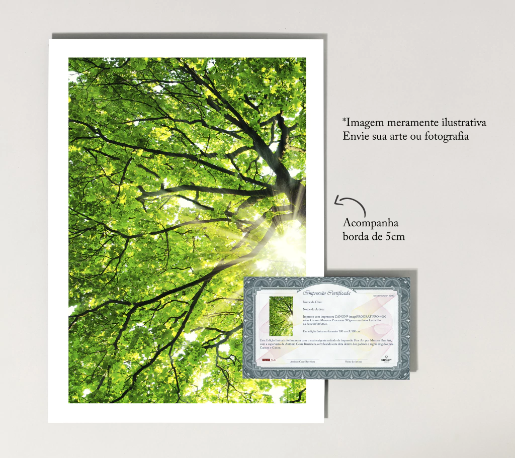 Nosso certificado fine art está disponível para os artistas comprovarem que a arte realmente foi impressa em Fine Art.
