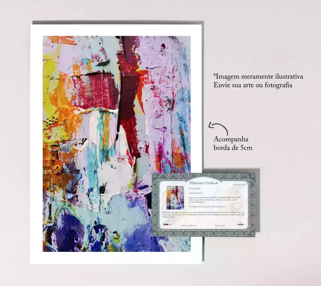 Nosso certificado fine art está disponível para os artistas comprovarem que a arte realmente foi impressa em Fine Art.