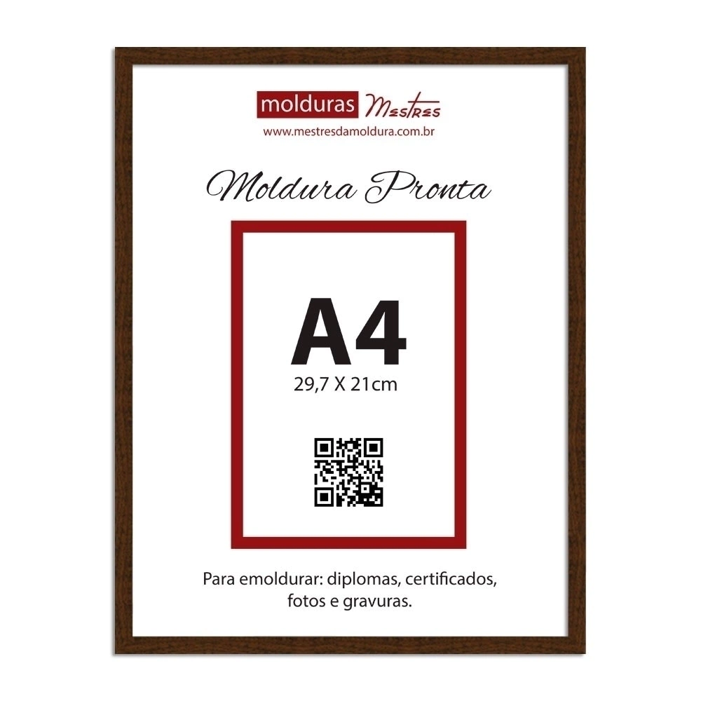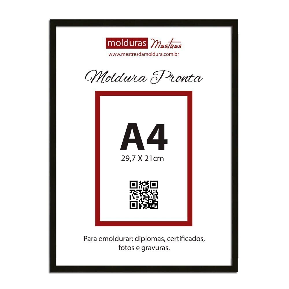 Molduras Prontas no tamanho padrão A4, com sistema de fechamento flexível e facilidade na remoção do fundo para substituição da arte, penduradores na vertical e horizontal para usar em qualquer direção.